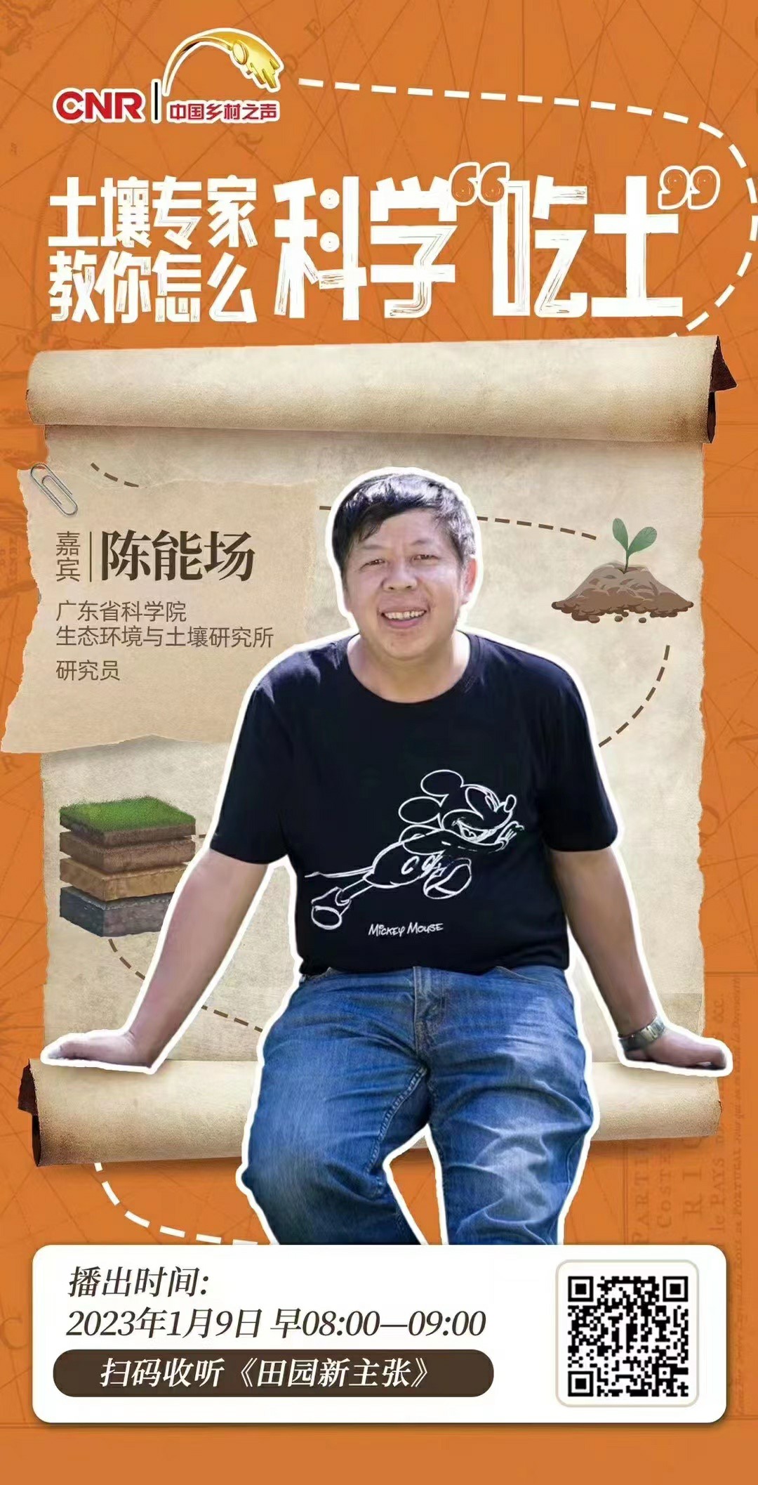2023年1月9日,中央人民廣播電臺中國鄉(xiāng)村之聲《田園新主張》欄目播出了對中國土壤學會科普工作委員會主任、廣東省科學院生態(tài)環(huán)境與土壤研究所陳能場博士的專訪節(jié)目《土壤專家教你怎么科學“吃土”》。陳博士結合自己土壤學專業(yè)知識,就如下問題進行了詳細介紹:土壤為什么與人體息息相關?吃土能治病和減肥嗎?吃土能解決水土不服嗎?吃土能消化嗎?等。并解釋了最近非常火的、迅速廣為人知的蒙脫石散是什么及它的作用。該節(jié)目讓聽眾對土里的寶藏有了清晰的認識。