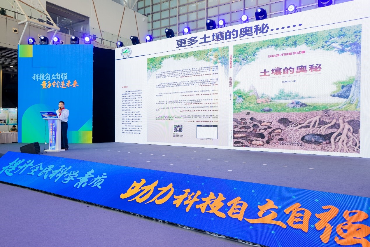 楊順華博士在主會(huì)場(chǎng)發(fā)布科普新書《土壤的奧秘》