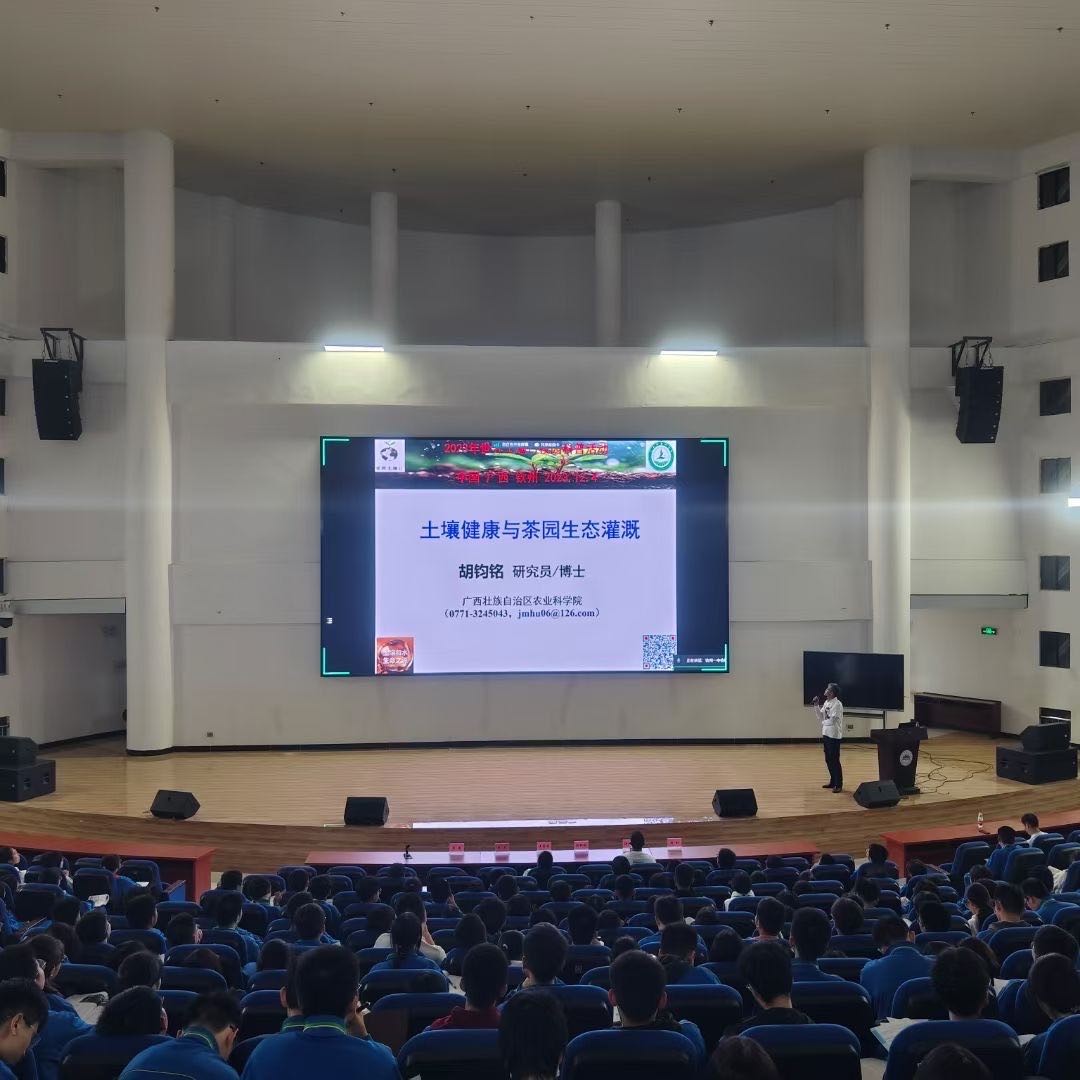 活動通過線下線上相結(jié)合的方式,在欽州市第一中學科技館舉行科普講座,現(xiàn)場播放了糧農(nóng)組織土地與水資源司司長李立峰博士視頻致辭,中國土壤學會科普工作委員會主任陳能場研究員做“土壤與水”線上致辭,隨后中科院亞熱帶農(nóng)業(yè)生態(tài)研究所徐憲立研究員及中國土壤學會科普工作委員會委員廣西農(nóng)業(yè)科學院農(nóng)業(yè)資源與環(huán)境研究所胡鈞銘研究員、廣東農(nóng)科院茶葉研究所唐顥研究員分別做了《流域生態(tài):水資源與生態(tài)》《土壤健康與茶園生態(tài)灌溉》《現(xiàn)代智慧茶園》3個專業(yè)科普講座,并與校內(nèi)學生互動交流,進一步提升公眾關(guān)注水生態(tài)、土健康及茶安全,增強水土保護意識。同時在廣西農(nóng)業(yè)科學院農(nóng)業(yè)資源與環(huán)境研究所、欽州市第一中學設立科普展板,從土壤和水維持地球生命健康、土壤和水是相互關(guān)聯(lián)的資源、土壤和水管理不當影響環(huán)境生態(tài)、水土保護有助于減緩和適應氣候變化4個方面進行宣傳展示,累計約700人參加了本次科普活動。